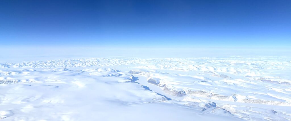(雲海ではなく地上の雪。綺麗だけれど、こんな場所に人は住めないよな…。)