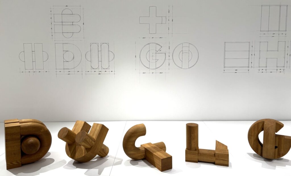 ある一方向から平面として見ると、紛れもなくアルファベットの文字なのですが、角度を変えて見ると、円柱や球体や立方体や板などが用いられていて、複雑だけれどどこか規則性のある立体的な奥行きが表現されています。