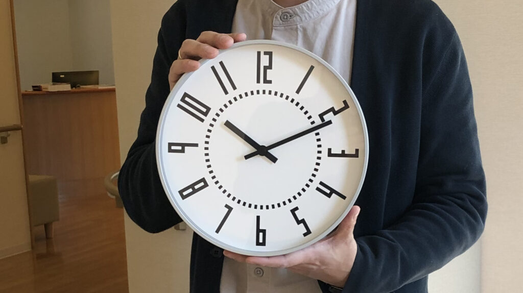 4年半前のブログにも書いたのですが、当院の受付の左手の壁には、建築士の友人が会員祝いで寄贈してくれた、五十嵐威暢さんデザインの時計があります👇🕓(五十嵐威暢さんは今年2月に他界されました)