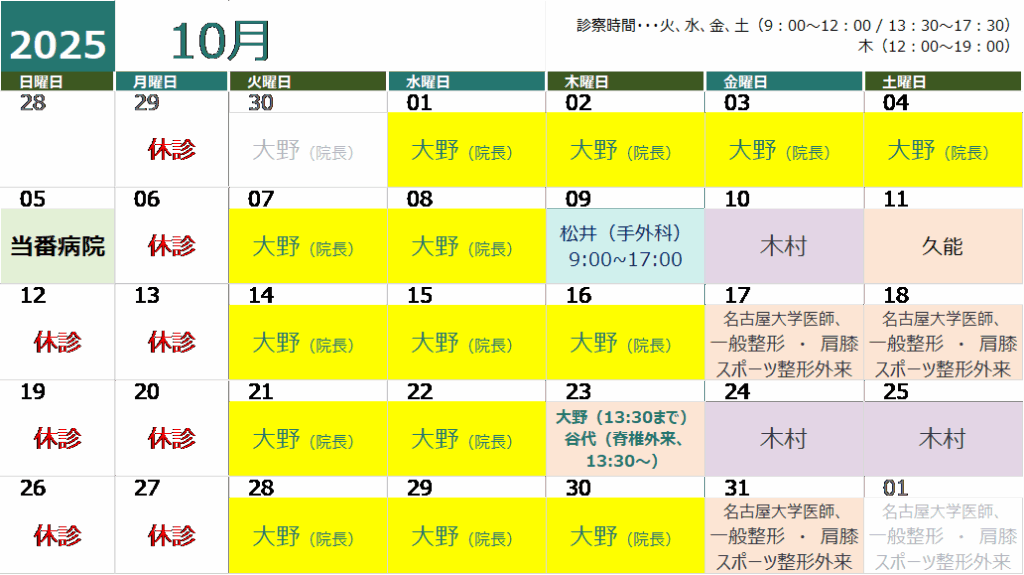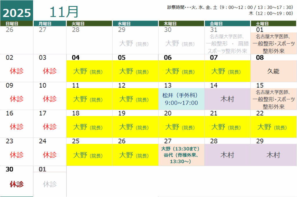 医師の変更もございますので、上記診療カレンダーをご確認の上ご予約をお願いいたします。